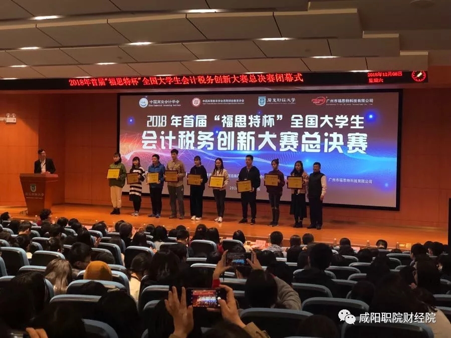 2018年12月08日,由中国商业会计学会主办,中国高等教育学会高等财经教育分会为指导单位,广东财经大学承办,广州市福思特科技有限公司协办的2018年首届"福思特杯"全国老员工会计税务创新大赛总决赛在广东财经大学举行。公司参赛队从来自全国20个省的高职院校35支参赛队伍中脱颖而出,取得第十三名,荣获三等奖。
