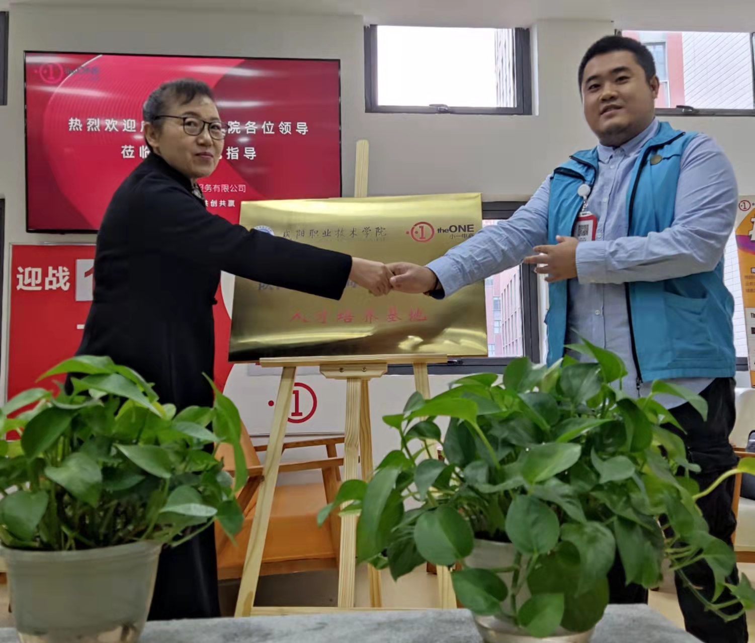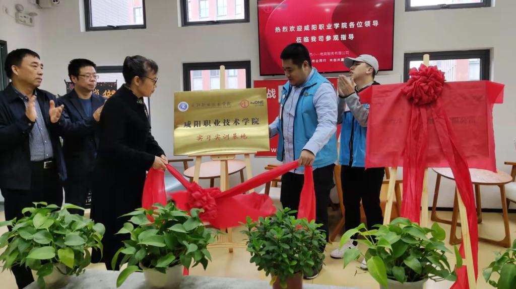 签约仪式后,双方举行了挂牌仪式:咸阳职院为小一电商挂牌人才培养基地,小一电商为咸阳职院挂牌实习实训基地。