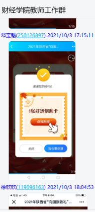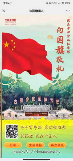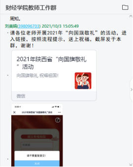 教师通过微信小链接,积极参加陕西省“向国旗敬礼”、线上送祝福的活动。