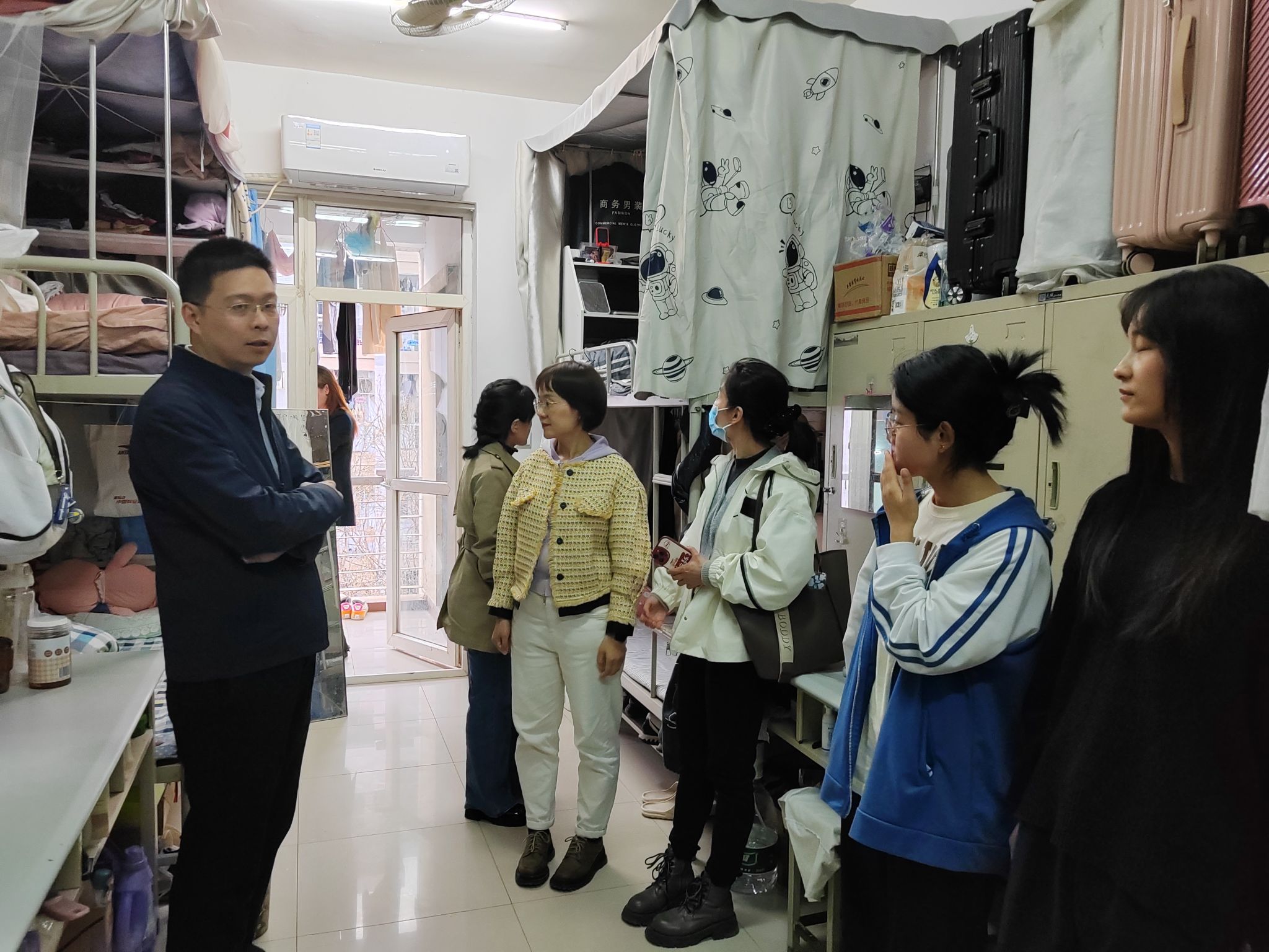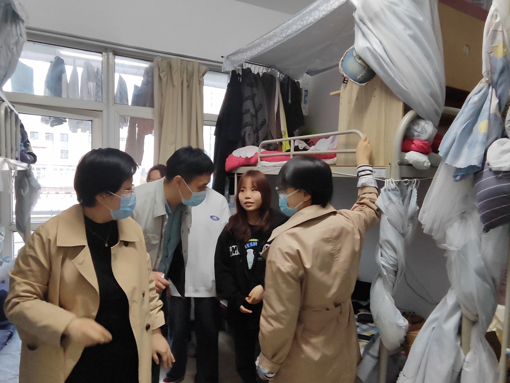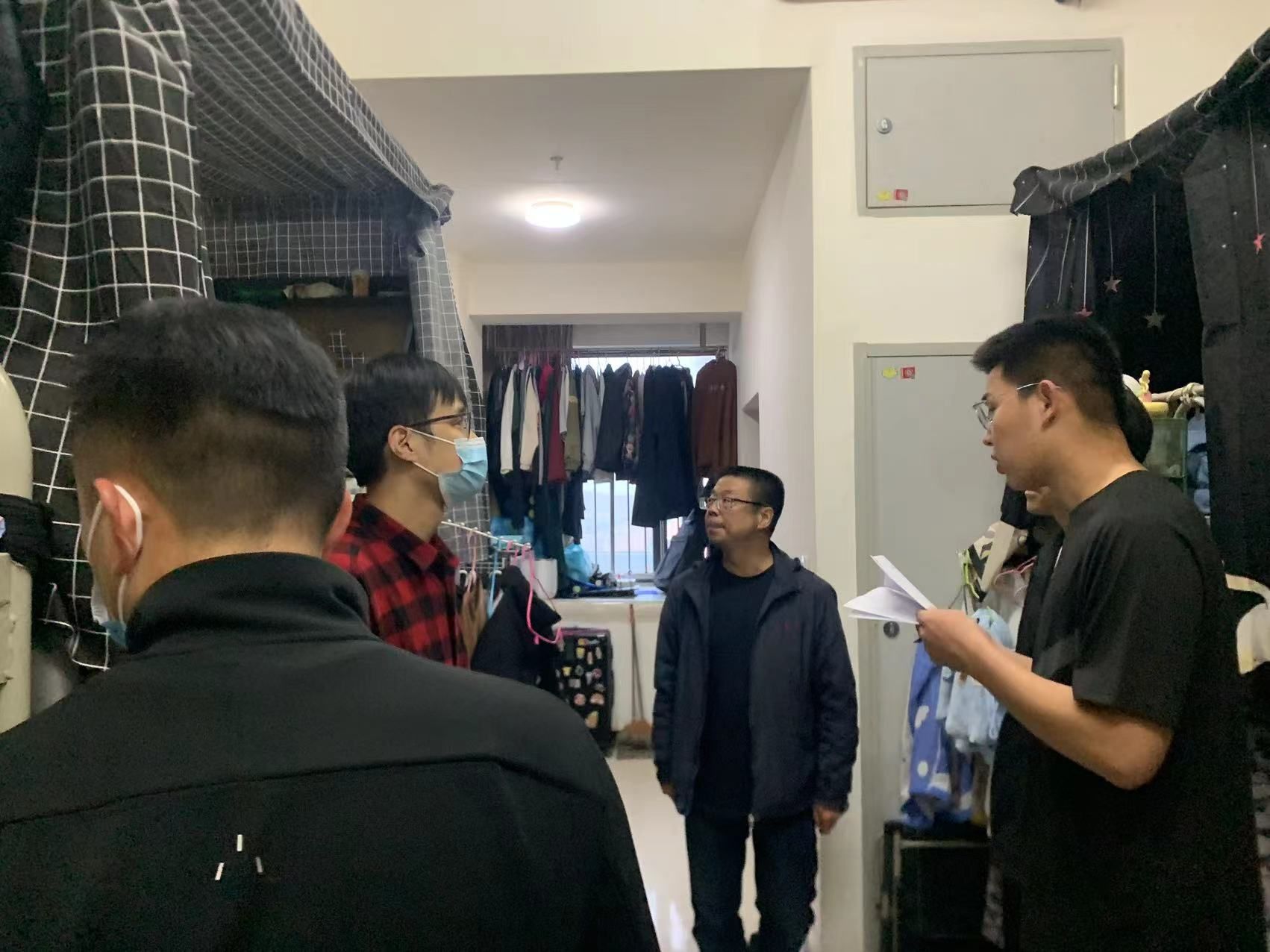 3月29日晚上,党总支书记肖渭、经理范坤带队、全体辅导员(班主任)参加,对员工宿舍进行检查,全面排查风险隐患,及时整改问题。