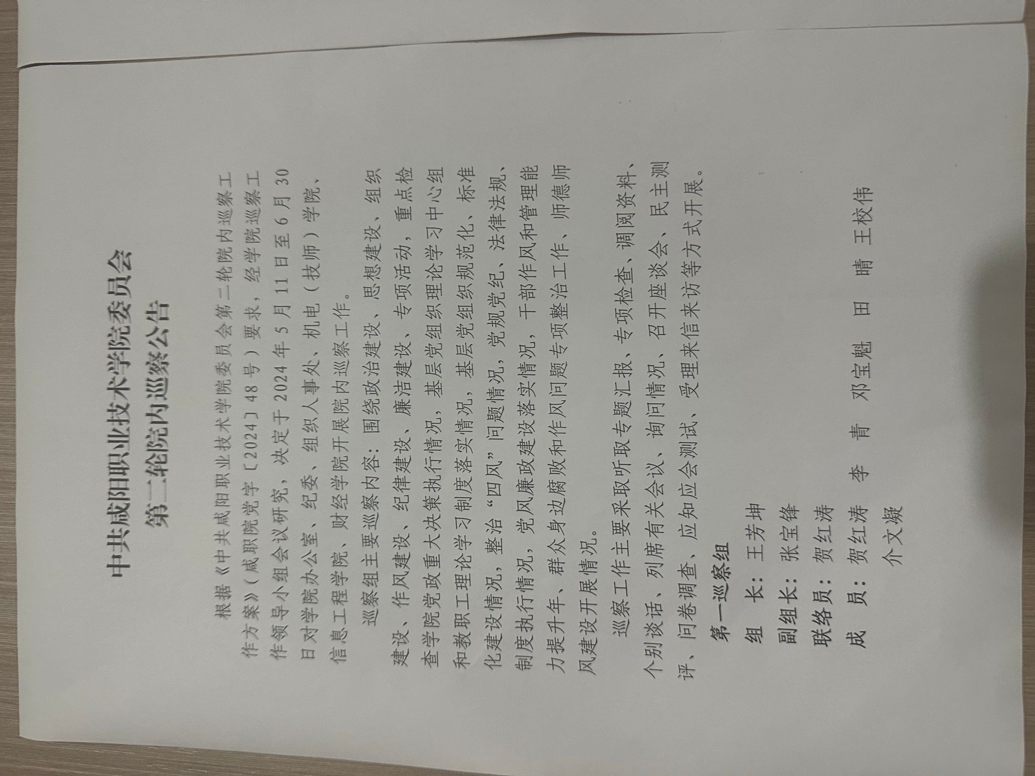 中共必发集团委员会第二轮院内巡察公告
