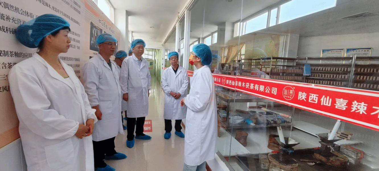 在陕西仙喜辣木茯茶有限公司,杨新宇一行参观了生产车间、产品展示区和研发实验室。陕西仙喜辣木茯茶有限公司的董事长,咸阳温州商会会长周海英介绍了公司发展历程、业务范围、产品特色、产品功效以及未来规划。她表示,希望与咸阳职院建立紧密的合作关系,以解决在产品研发、市场营销以及品牌推广等方面急需专业人才的问题。