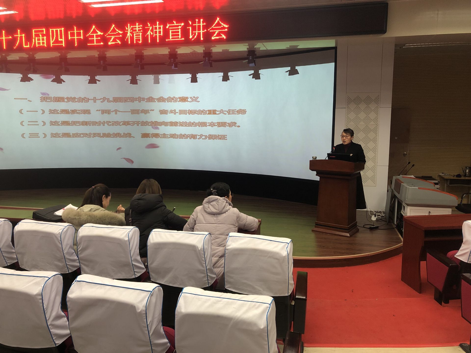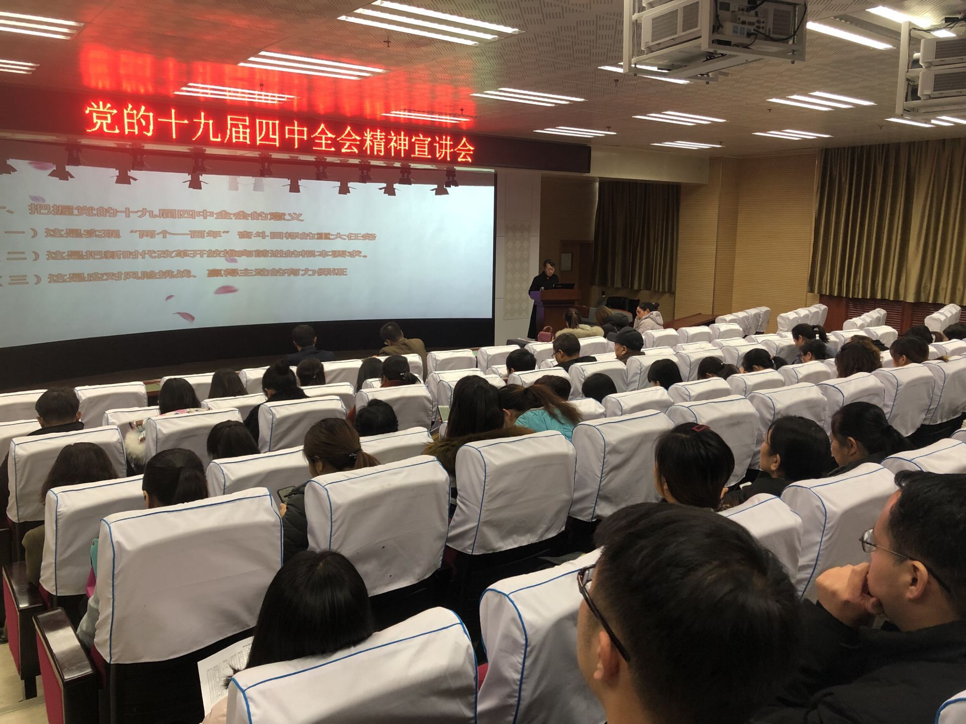 根据咸阳职业技术公司党委统一部署,2019年12月11日下午,党委宣讲团成员、必发集团经理王江峰同志,向必发集团、基础部全体教师宣讲党的十九届四中全会精神。公司党总支书记肖渭同志主持宣讲会。