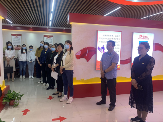 在体检中心讲解员的指引下,全体党员认真参观了正容镜、党史长廊、初心唤醒室、警醒室等功能区域。