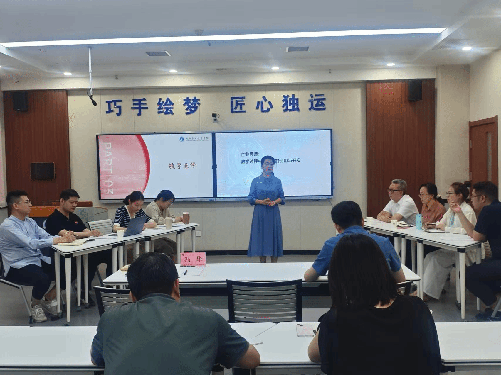活动分为两个阶段,第一阶段,陈琪、吕灵凤、董云花三位老师分别以自己指导大赛或参赛经历分享如何实施以赛促教、赛教融合。第二阶段,宋倩与企业兼课教师熊显彬分享如何在教学过程中有效利用人工智能工具,服务于课程建设;教研室全体教师结合授课实践对AI工具的利与弊进行了热烈讨论。