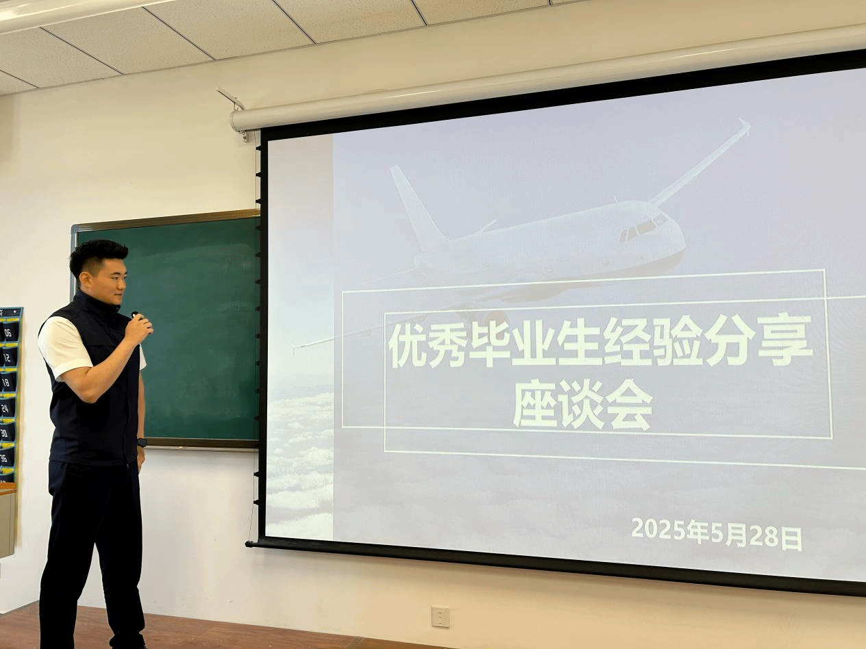 成功飞上蓝天,只是精彩职业生涯的起点。毕业生们紧接着分享了他们入职后的工作经历与深刻体悟。王占成学长通过飞行的照片和视频,分享了许多“累并快乐着”的工作日常,讲述不同航线的飞行特点、作息挑战,以及如何快速适应时差与高强度工作。两位毕业生畅谈这份职业带来的广阔视野、多元文化体验和个人能力的飞速提升。真实的职场画卷徐徐展开,让在校生们对未来的飞行生涯既充满向往,也有了更理性的认知。