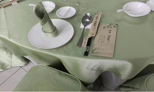 该赛事由骞姣、韩燕妮两位教师指导,立足服务区域、行业发展与岗位实际,突出文化传承主线。2位员工为4A级景区主题特色小镇“诗经里”量体设计商务型定制宴会“释味·诗经里”,通过流苏、青山、净溪、素瓶等极具中华文化特征的元素设计古朴、淡雅台面,以《诗经》中记载的著名食材设计诗意菜单,以此呈现和传承源远流长、精彩纷呈的中华饮食文化。