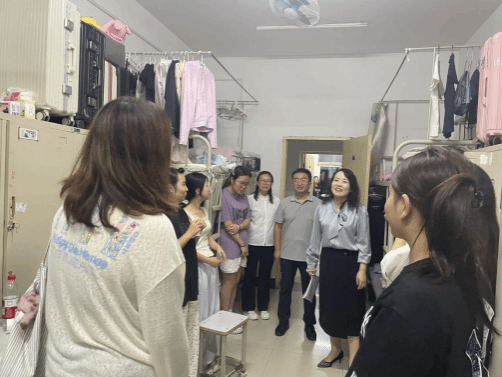 9月7日晚,必发集团经理魏文萍,党总支书记刘健,学发办工作人员及全体辅导员深入宿舍,走访慰问员工。