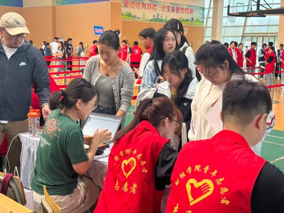 集团的迎新报到处,如同一片欢乐的海洋。老师们和志愿者们精神抖擞,用最灿烂的笑容迎接每一位新生的到来。新生们在报到处有序办理入学流程,无论是身份核验,还是领取校园卡等物品,都在志愿者们的引导下顺利进行。地铁口的志愿者们更是忙前忙后,帮新生提行李、指引路线,用贴心服务让新生们刚进校园就感受到浓浓的关怀。