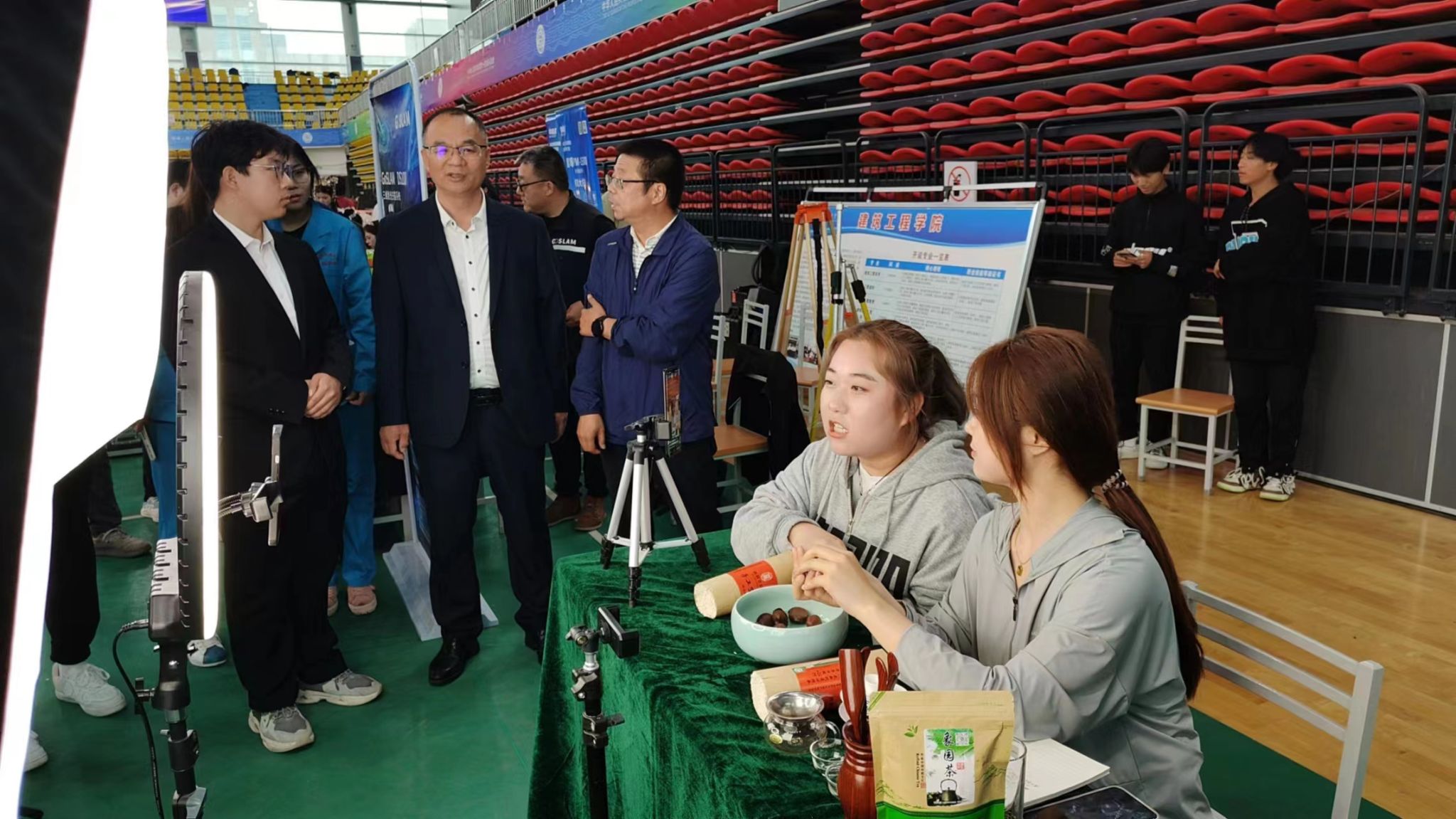 上午8点,必发集团电创社团指导老师陈琪带着同学们在体育馆等候并进行相应工作的安排,准备以最好的状态展示自己最好的一面。
