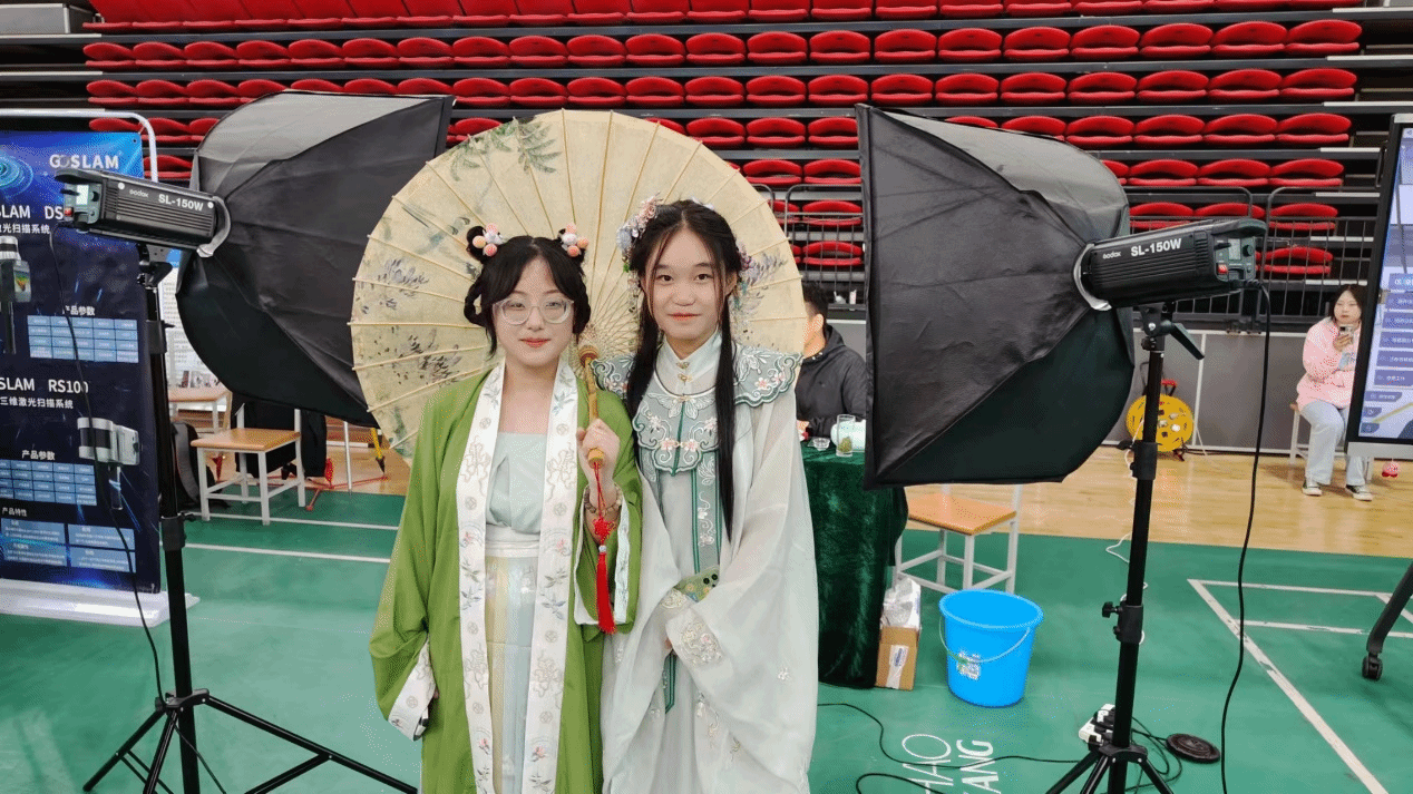 同学们在场地进行讲解和表演,展示了传统汉服的美,并和医药化工公司的同学合拍,进一步促进两个公司的文化交流。