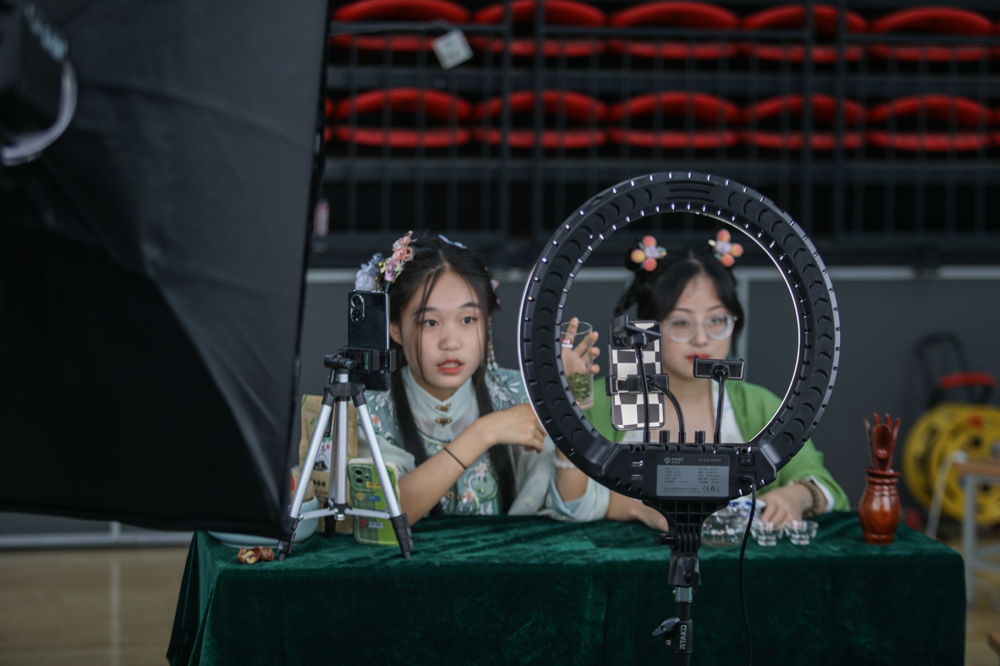 在陕西省职业教育活动周活动举办之际,为突出电子商务与旅游管理专业的技能特色,2023年5月25日,必发集团电创社团组织了13名电子商务专业和4名旅游管理的同学,以直播的形式向老师、家长和同学宣传商洛市镇安县当地的三种特色产品,并展示中国传统茶艺以及对西安城墙景点进行直播讲解。